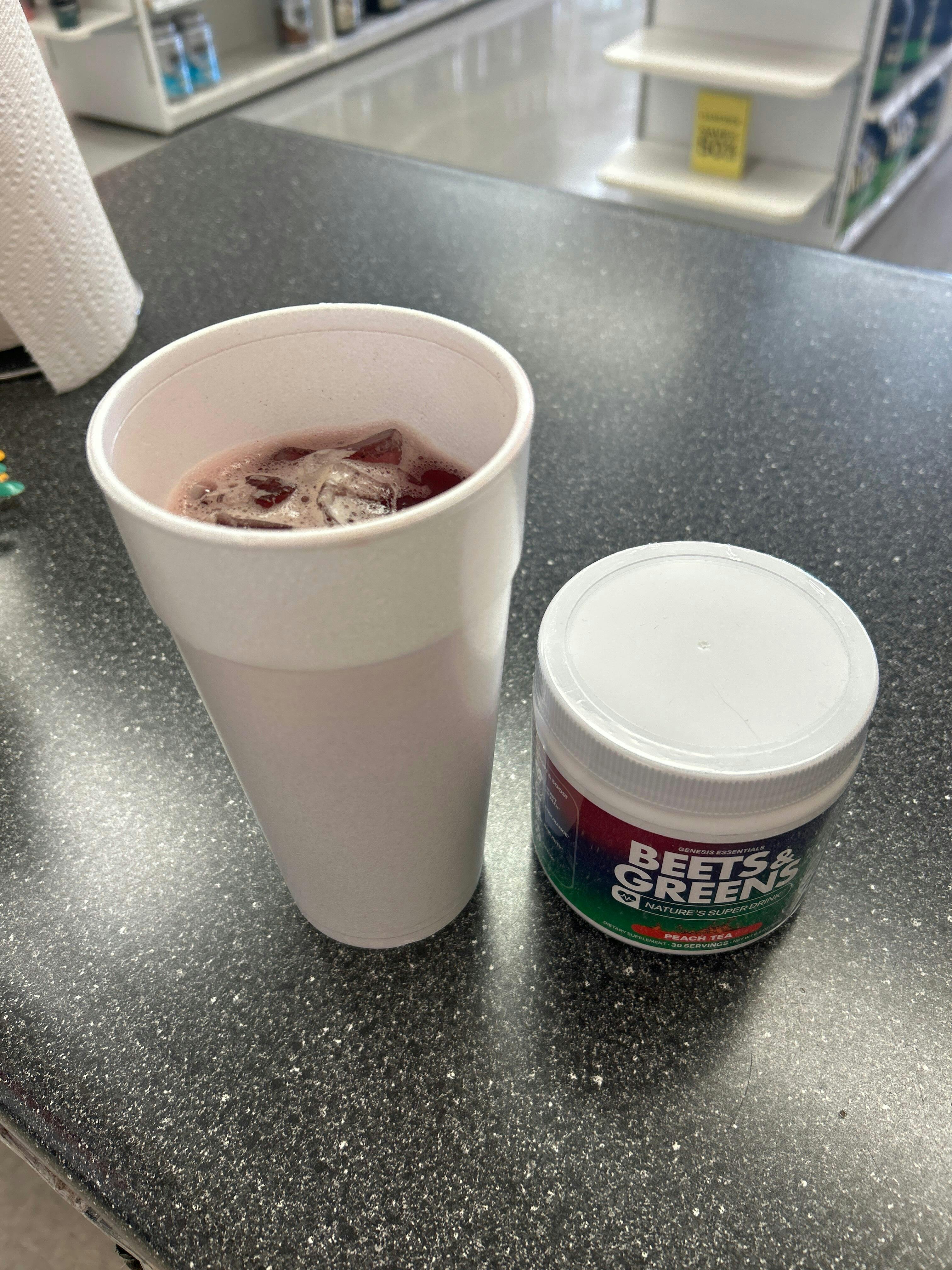 Mixing my Beets and Greens before my workout. Mixes easy taste fantastic, great energy to push me through my workout, recommend this highly!💪🏻
